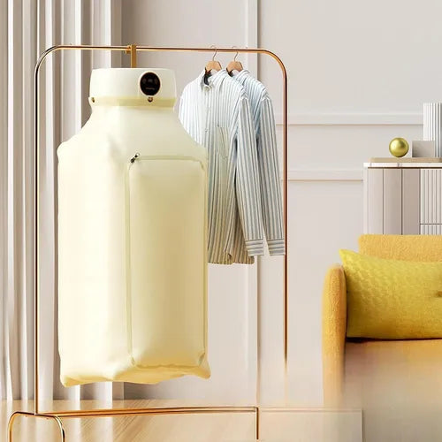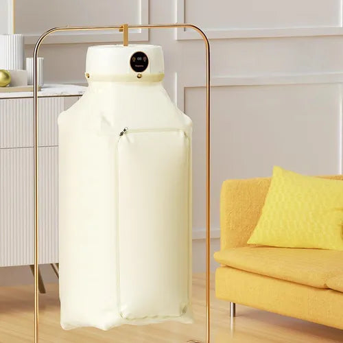 Diseño portátil y liviano: Esta secadora de ropa compacta está diseñada para una fácil portabilidad, por lo que es una opción ideal para viajar. Su estructura liviana asegura que puede llevarlo sin esfuerzo a donde quiera que vaya